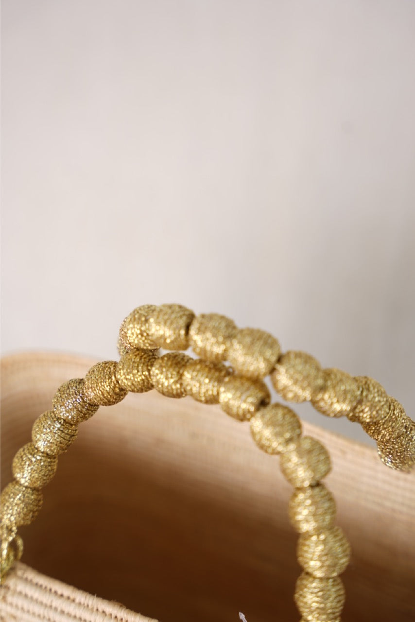 Designed for sun filled days and effortless travel, the Ikat Bag is a refined take on a classic woven tote. Crafted from a lightweight natural weave, it’s easy to carry from beach mornings to leisurely afternoons. Gold wrapped handles and a soft tassel detail add a subtle touch of texture and shine, making it feel elevated yet relaxed. A perfect finishing piece for warm weather looks and getaway packing.
